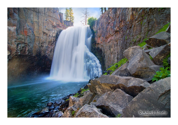 These falls are located inside an area known as the Devil's Postpile National Monument, just west of Mammoth Lakes & Mammoth Mountain ski area in the eastern sierras. There's only one dead-end road in and out this place and it usually doesn't open until mid-June, the road being impassable due to deep snow.